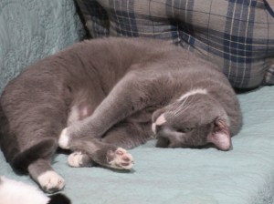 When Marty lived in our backyard as a feral cat, we tried to befriend him by trying to pat him. But each time we tried, he would quickly turn around and swing at us with a paw. Hence, that’s how he acquired the nickname. Now, he’s strictly an indoor cat, but his swinging habit hasn’t disappeared, yet, he loves pats!
